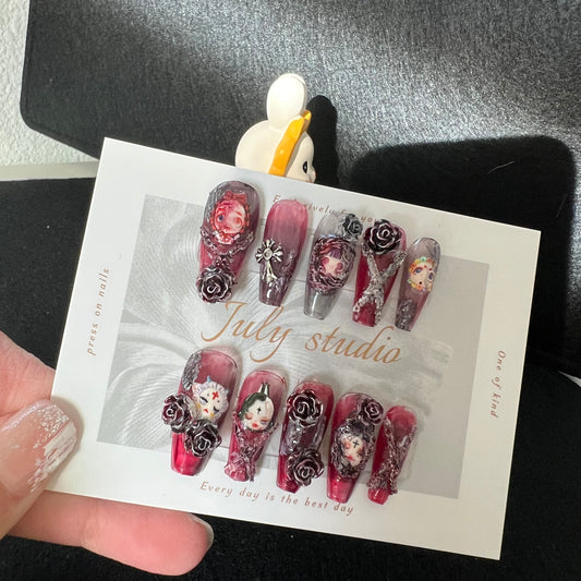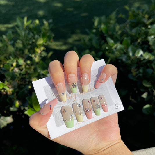 LONG COFFIN |GRAFFITI BLUSH PRESS ON NAILS
