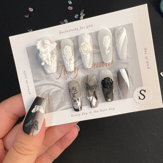 LONG COFFIN |BALCK MABLE |SLIVER 26BUTTERFLY纯手绘
