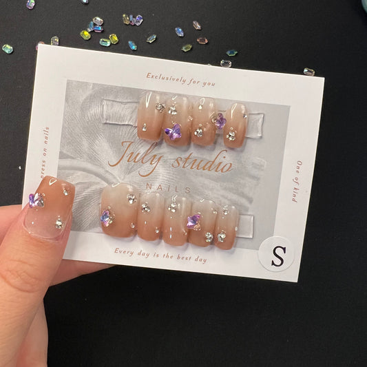 Short Square Purple Gradient with liked Diamond press on nails