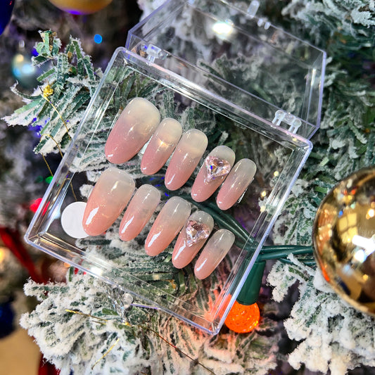 pink gradient K9 medium stiletto liked diamond press on nails