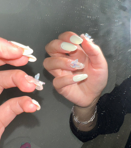 LONG STILETTO |3D BUTTERFLY WITHE PRESS ON NAILS