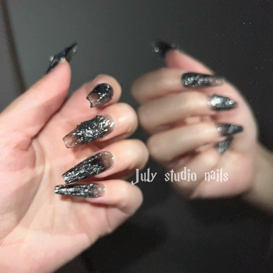 LONG COFFIN |BALCK MABLE |SLIVER 26BUTTERFLY纯手绘