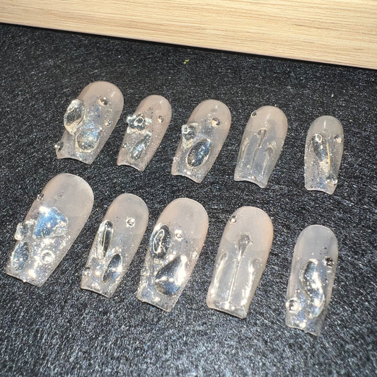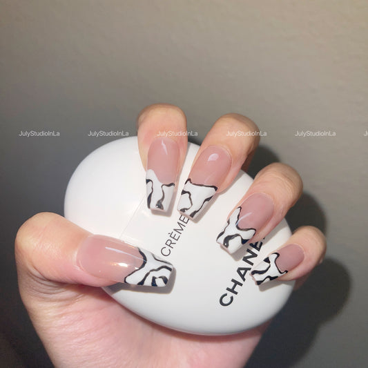 GRAFFITI BLUSH SHORT MEDIUEM SQUAREP RESS ON NAILS(涂鸦不同随机发)