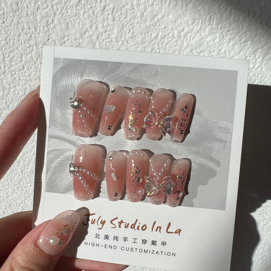 LONG COFFIN | BOW WITH SAMLL PEARL| SURER SHINING