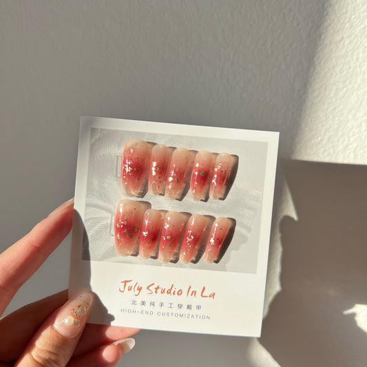 LONG COFFIN | RED BLUSH |PRETTY NAILS